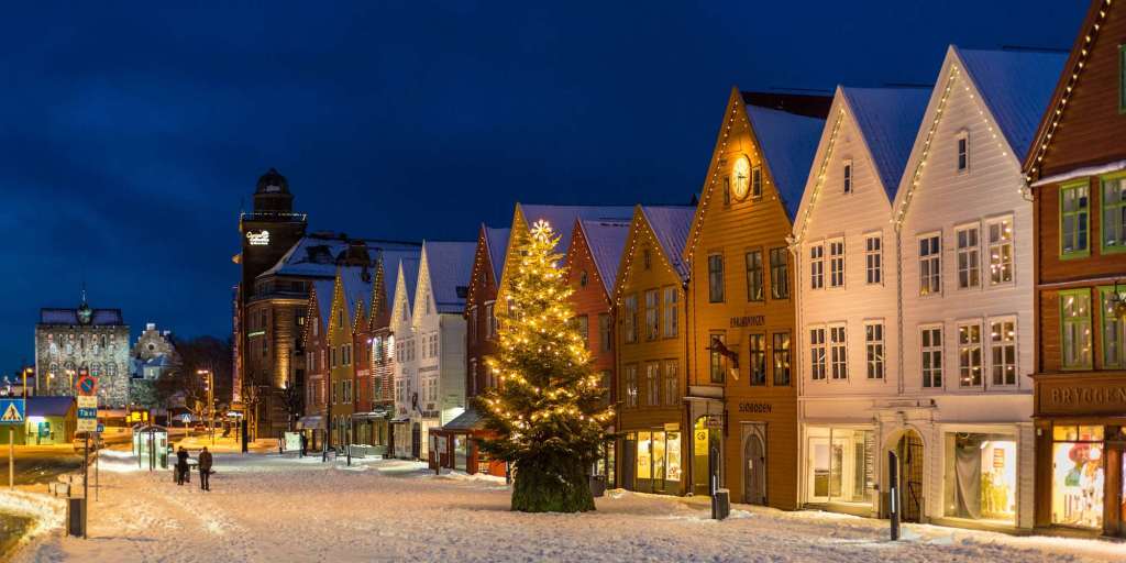 In the city of Bergen there are Christmas streets with a lot of lights, these years even a Christmas Market, and a lot of buildings – like the fronts of the old Bryggen – are decorated with light bulbs, bells, branches of spruce and other symbols for Christmas or Turn-of-the-year celebration.