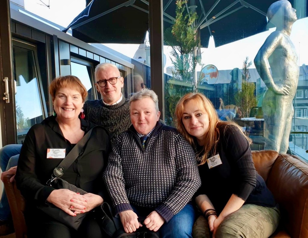 Sólveig Pálsdóttir and her fellow Icelandic author Óskar Guðmundsson, and two of her biggest fans: Jacky Collins and Ewa Sherman. Iceland Noir 2021.